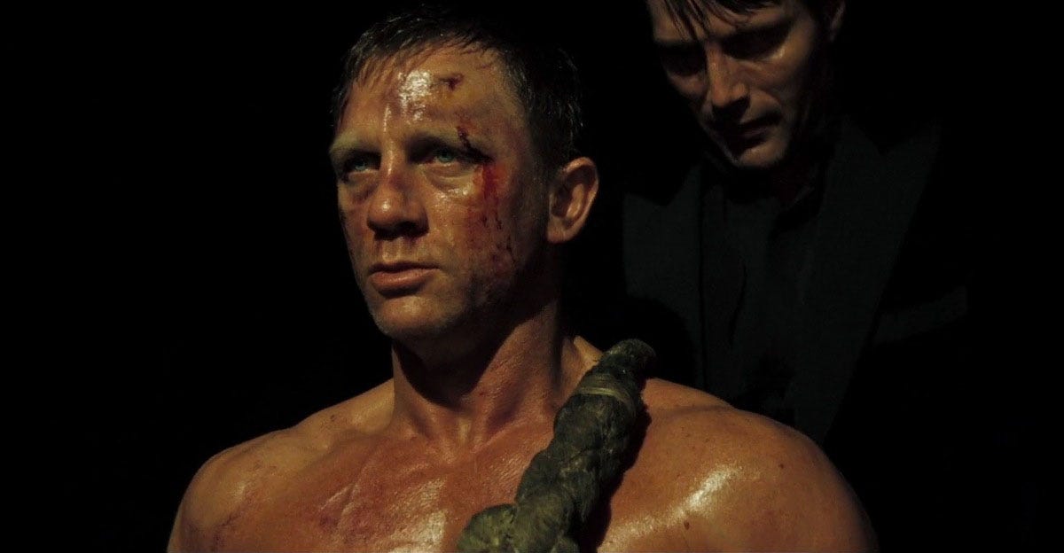 The role of torture in male lead action movies is discussed by Brown as a yard stick to compare the treatment of women in similar movies. He covers the narrative, typical of macho 80s action stars that follows: sweaty, maybe even partly naked men are subdued and put under extreme amounts of pain to ultimately power through the agony to defeat their assailants and return to their goal. He brings forth examples in Rambo: First Blood (1985), Lethal Weapon (1987) and more recently Casino Royale (2006). Brown argues two justifications for this narrative device. The first being male torture scenes act as a way to allow the viewing and appreciation of the naked male form without it becoming a subject for arousal. The pain and the circumstances of these naked bodies causes a moral oscillation in the viewer that moves the subject out of the realm of the erotic and into the unpleasant. Brown writes: